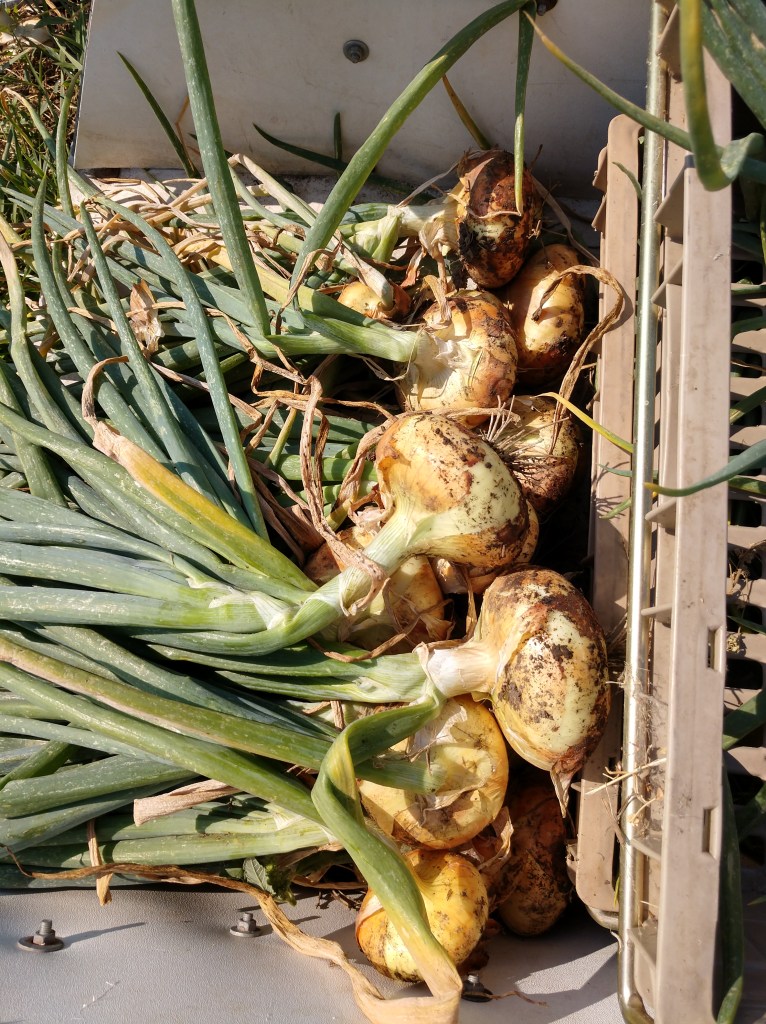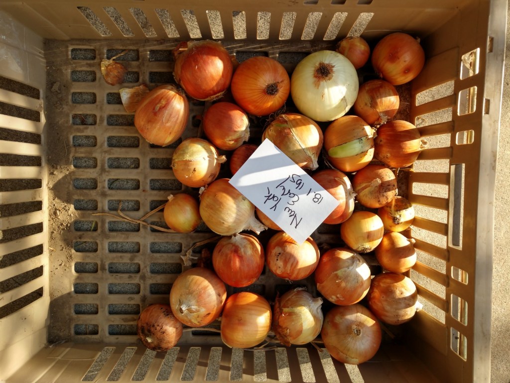 So some surprises there. Harvest was generally over a two week period, where every few days, we’d pull whatever had fallen over recently (which is how you know an onion is ready to be harvested).