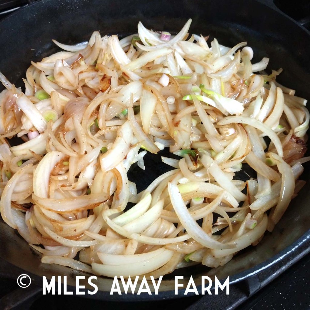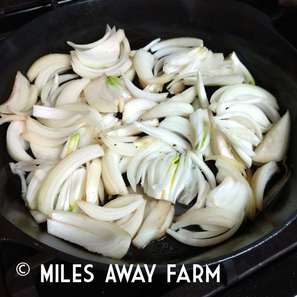 - 3 cups onions, sliced into half moons (about 2 good sized ones)