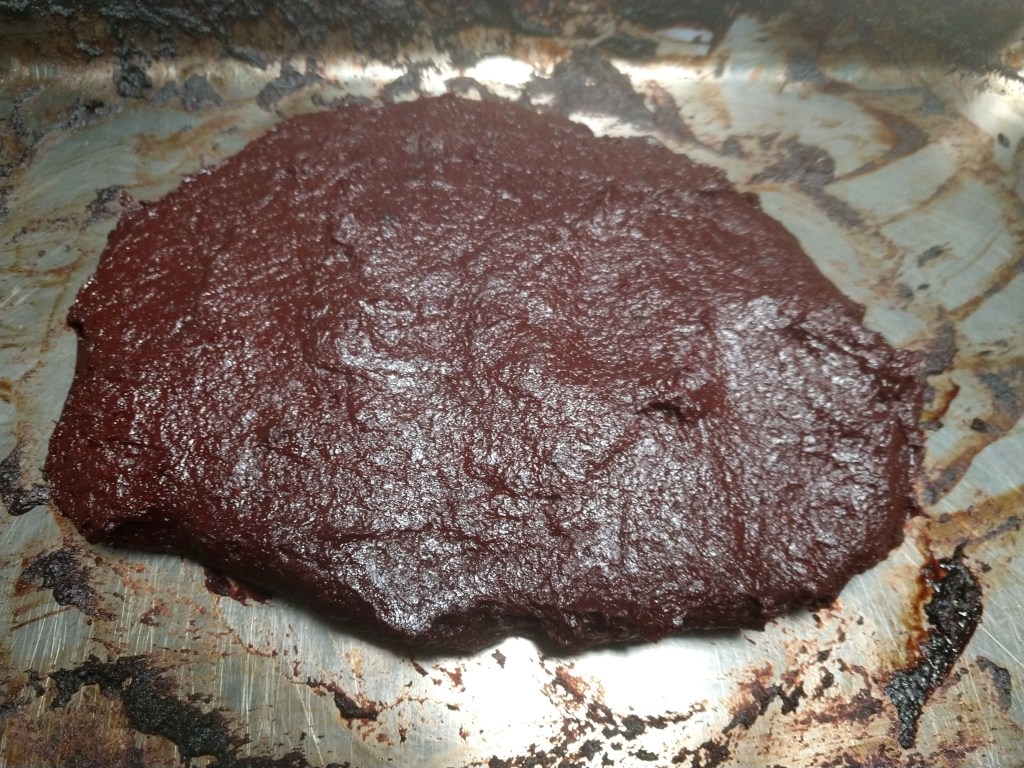 In short, you take 20+ lbs of tomatoes and cook them down very slowly in an oven (in Italy, they do this outside on the rooftops) until its a very concentrated paste. What starts out as about 2 1/4 GALLONS of tomatoes ends up as about 3 1/2 cups of finished paste. About a 91% reduction. Assuming that about 40 tomatoes goes into 20 lbs of puree (my tomatoes are pretty big), that works out to about a tablespoon of this concentrate being the equivalent of a 6 oz tomato. In short, its the best tomato paste you’ve ever tasted, and an amazing umami bomb to add to most any soup or stew that calls for regular tomato paste.